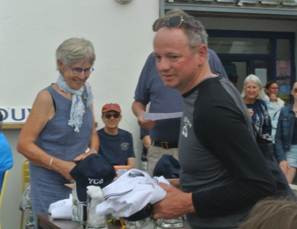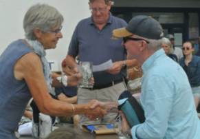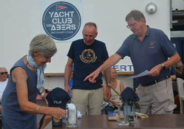 The prizegiving was held at the Yacht Club des Abers with a speech by Rob Hewett, representing HRSC, in French and English this year! COGS did their prizegiving and then Rob Hewett and Carol Lawrence presented the Helford to L’Aber Wrac’h Race prizes.