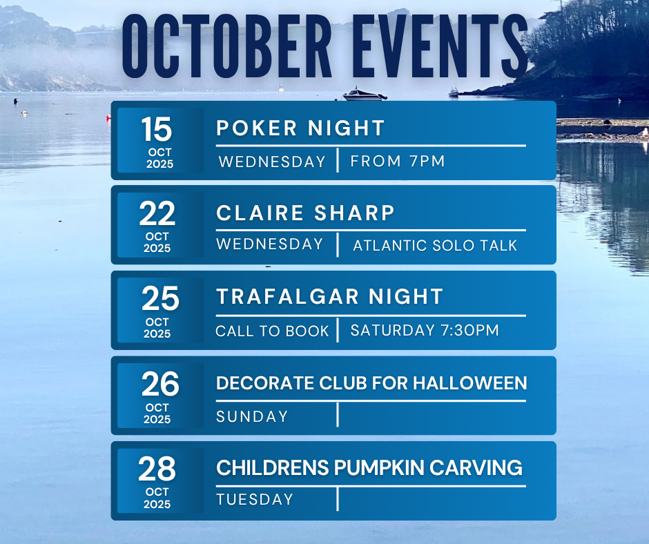 Helford River Sailing Club offers a varied programme of social events through the year. We email details to members and publish upcoming events here on our Facebook & Instagram profiles.
